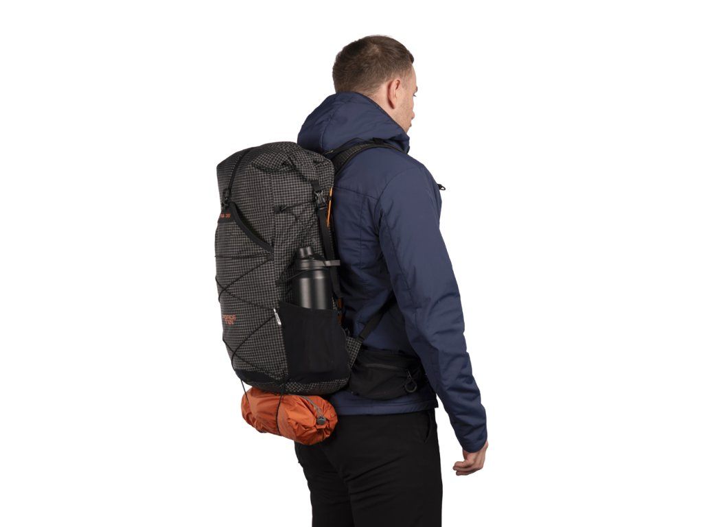 Po vyjmutí rámu a ponechání bederního pásu snížíte hmotnost a zvýšíte „rychlost“, to je vhodné na fastpacking nebo dlouhé trailové trasy. - Přední bungee systém