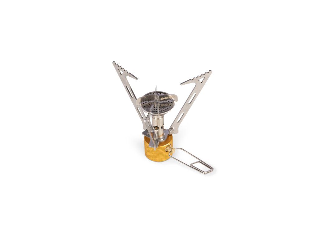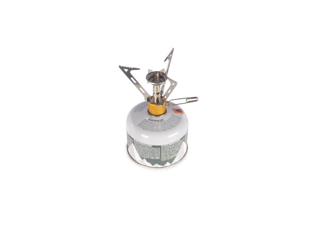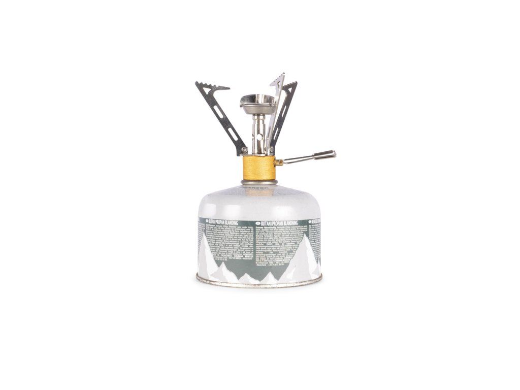 Skládací nožičky udržují vařič po sbalení krásně kompaktní, ale při vaření stojí stabilně. Šikmo tvarované podpěry na hrnec pomáhají bezpečně usadit různé velikosti nádobí, takže se nemusíte omezovat jen na jeden typ ešusu. Výkon si navíc snadno přizpůsobíte díky přesné regulaci plamene – od rychlého ohřevu až po pomalejší vaření.