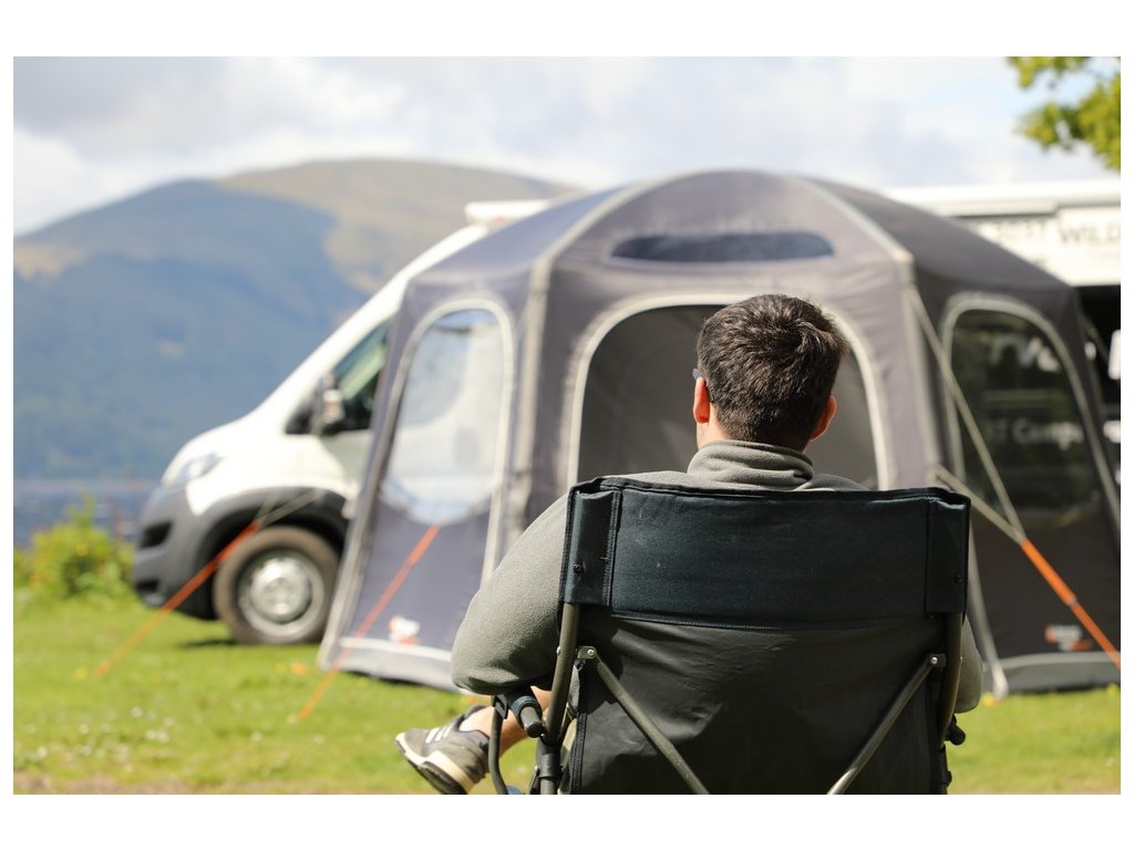 S pomocí sady pro odjezd oddělte tunelovou část markýzy od vozidla a odjeďte ji, takže markýza zůstane volně stát, zatímco budete den prozkoumávat okolí. Poznamenejte si parkovací polohu pro případ, že se vrátíte a markýzu znovu připevníte k vozidlu. -