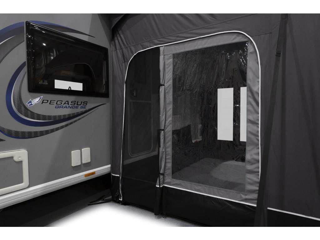 Zlepšete si utěsnění pomocí dvou nastavitelných svislých tyčí pro ochranu proti průvanu, které zajistí těsné uchycení mezi markýzou a karavanem. -