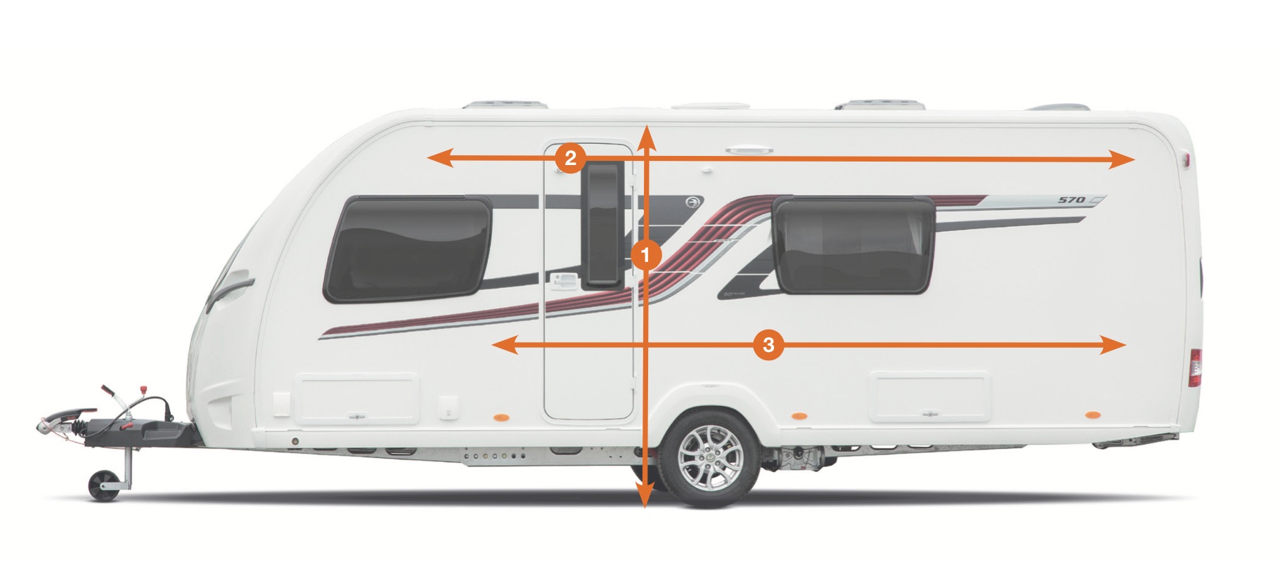2) Šířka - předstanyVango pro karavany, uvádějí šířku jako součást názvu produktu, např. Balletto Air 330 má šířku 330 cm. Jednoduše změřte celou délku rovné kolejnice, která vede podél horní části karavanu. Předstany Vango se ke karavanu připevňují pomocí rovné části kolejnice. Proto byste měli měřit rovnou kolejnici těsně před zakřivením na přední straně karavanu až těsně před zakřivením v zadní části karavanu. Tím zjistíte maximální šířku markýzy vhodnou pro váš karavan. Některé předstany pro karavany mají další boční křídla, která lze z délky rovné kolejnice vyloučit, protože je lze použít v zakřivené části karavanu.