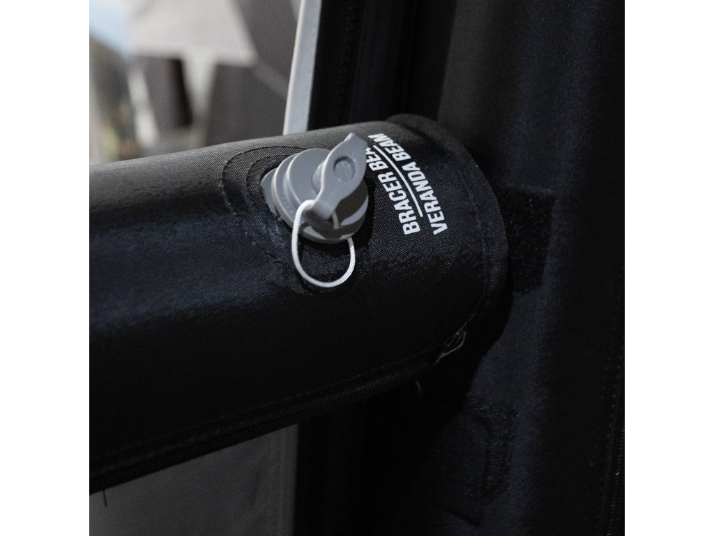 Zlepšete si utěsnění pomocí dvou nastavitelných svislých tyčí pro ochranu proti průvanu, které zajistí těsné uchycení mezi markýzou a karavanem. -