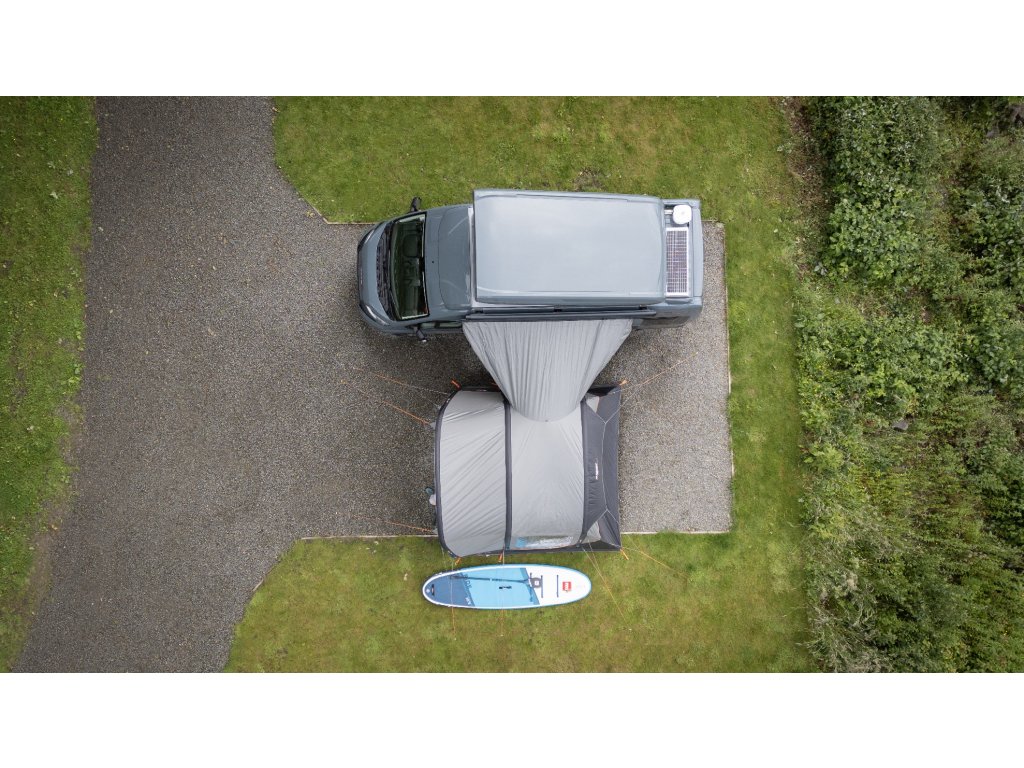 Přístavba se připevňuje k dodávce pomocí bočního nástavce, aby bylo zajištěno, že budete vždy čelem k výhledu, ať už jste kdekoliv. -