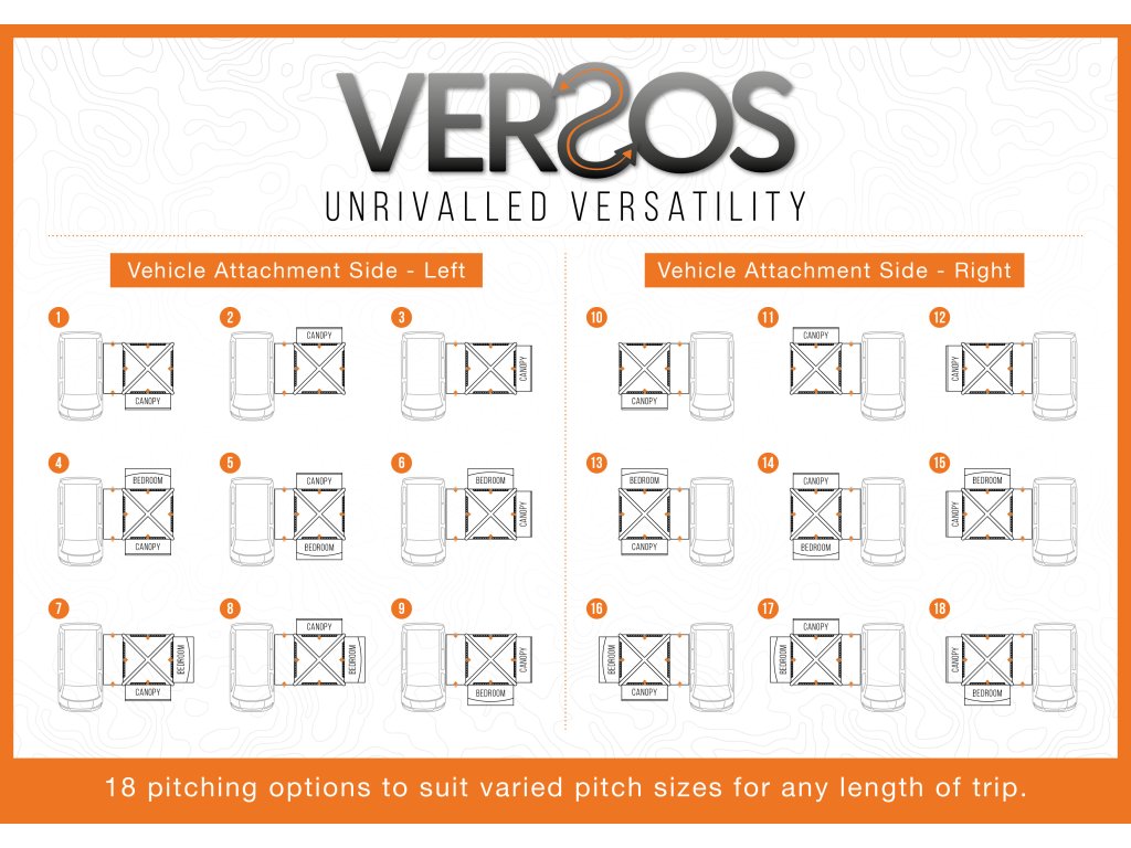 Díky variabilnímu uspořádání ložnice si lze vybrat, zda bude markýza orientována na přední anebo boční stranu. Díky všestrannosti je také ideální volbou pro vozidla s pravostrannou kolejnicí pro uchycení.
