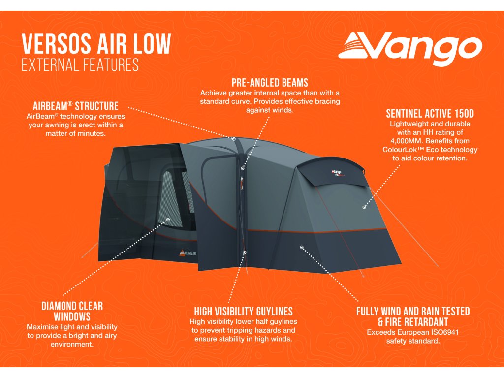 Nafukovací AirBeam® konstrukce – S 10letými zkušenostmi s technologií AirBeam® jsme lídrem v nafukovacích konstrukcích stanů. Technologie AirBeam® zajistí, že váš předstan bude postaven během několika minut (součástí dodávky je také obousměrná pumpa AirBeam®).