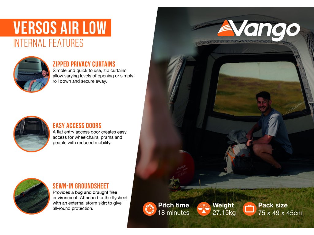 Tento předstan je navržen pro turistické použití; není určen pro statické nebo dlouhodobé sezónní užívání, protože rozsáhlé vystavení UV záření způsobí zrychlenou degradaci tkaniny. Na degradaci UV zářením se nevztahuje záruka. Při běžném používání na dovolené vám však bude předstan sloužit dlouhou dobu.