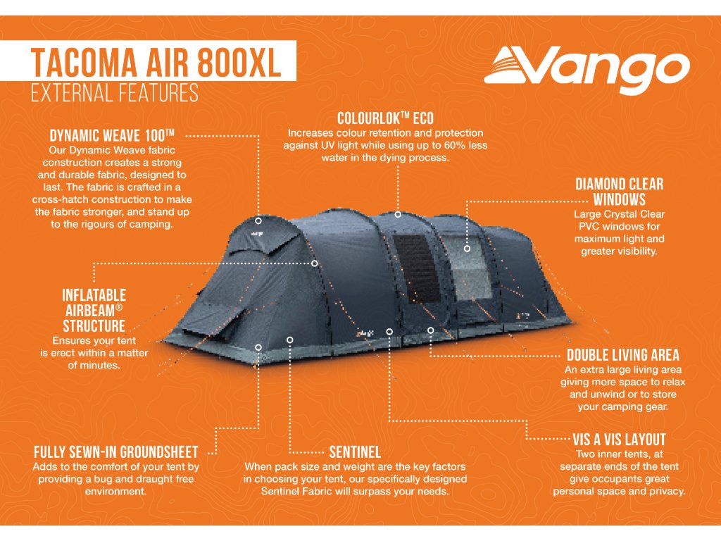 Nafukovací rodinný stan Vango Tacoma Air 800XL Package Deep Blue