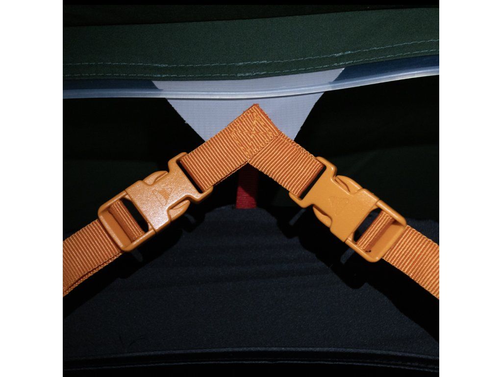 Zajišťuje stabilitu stanu i v silném a proměnlivém větru. Popruhy zpevňují konstrukci ve třech bodech a výrazně snižují boční pohyb stanu. -