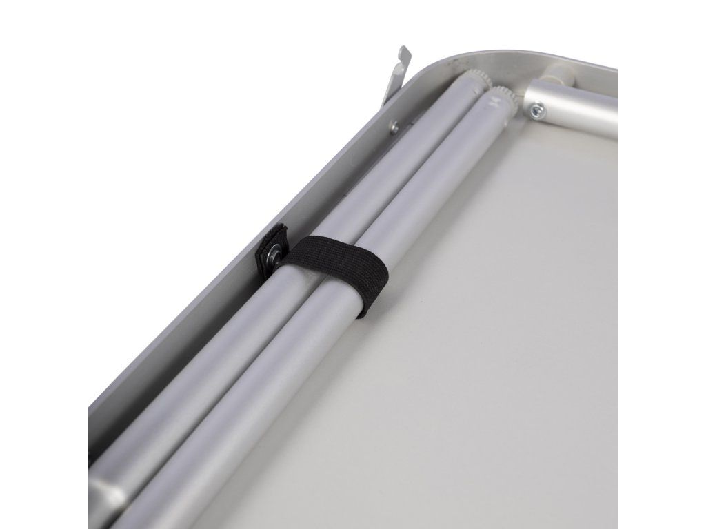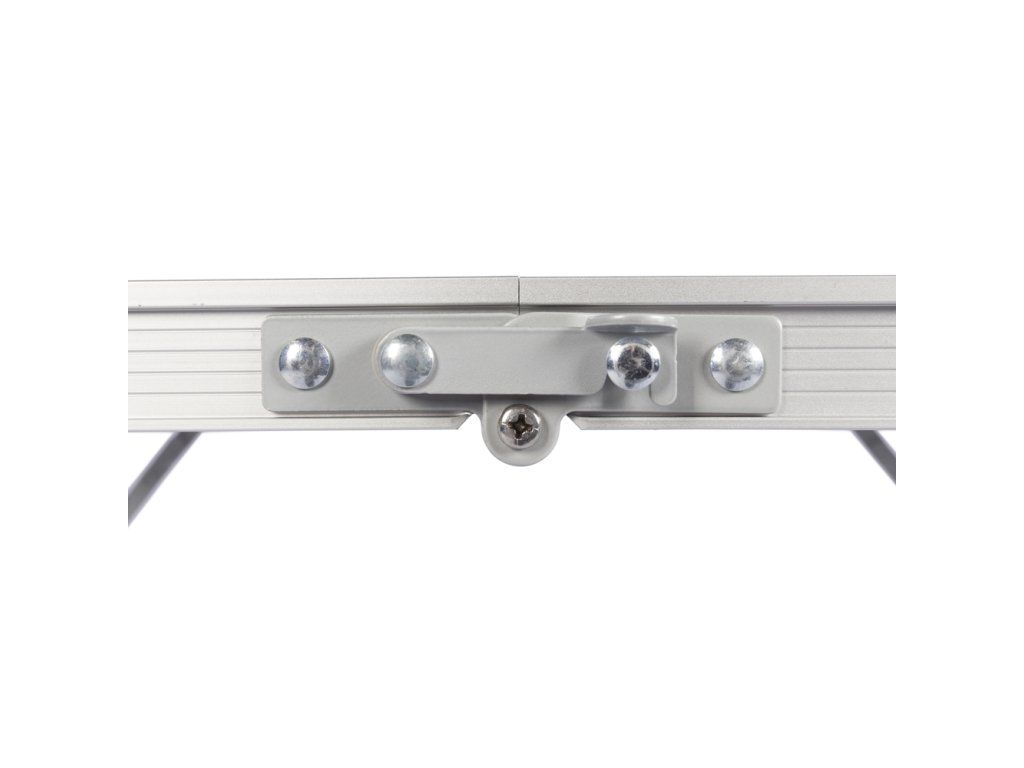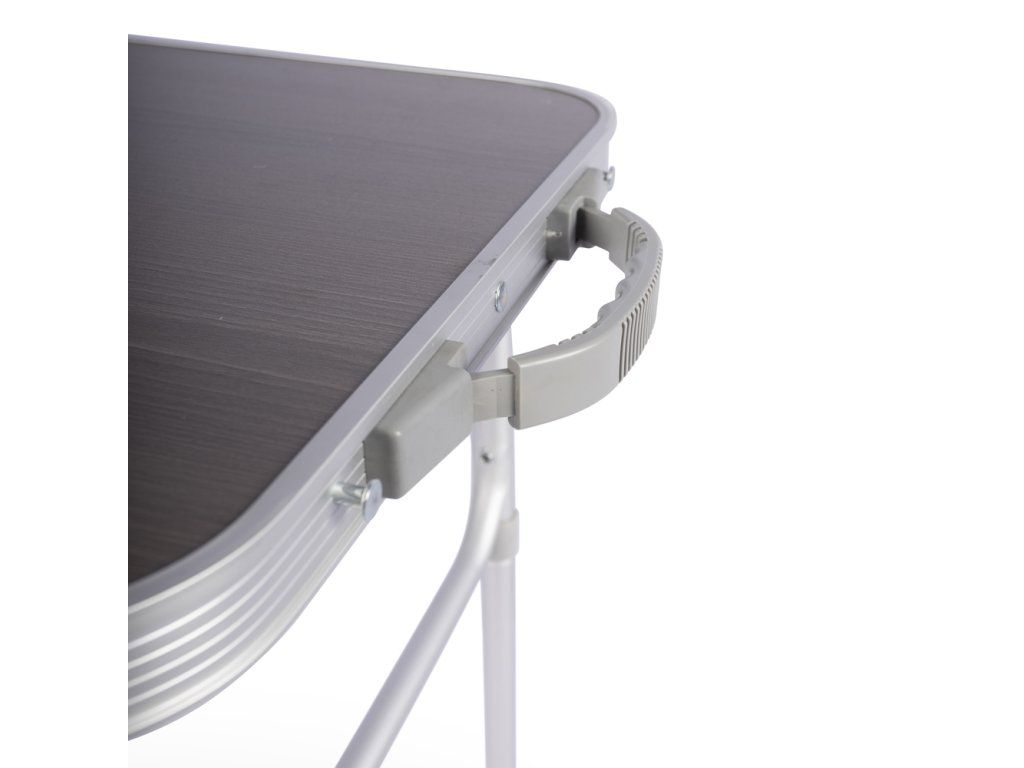 Odolná deska a lehký rám z něj dělají spolehlivého parťáka do kempu, do předstanu i na zahradu. A protože v terénu nebývá zem vždy rovná, oceníte nastavitelné patky, díky kterým stolek jednoduše vyrovnáte podle povrchu a nebude se viklat.