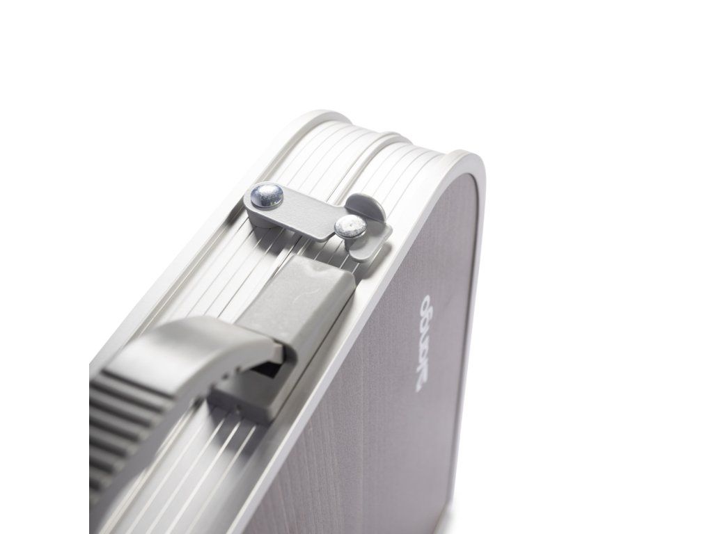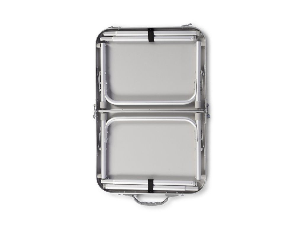 Na cestách potěší i skladnost, protože se stolek složí „do sebe“ a má praktické madlo, takže se snadno přenáší i ukládá.