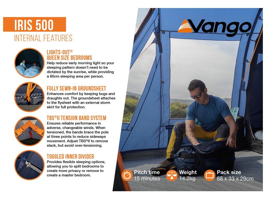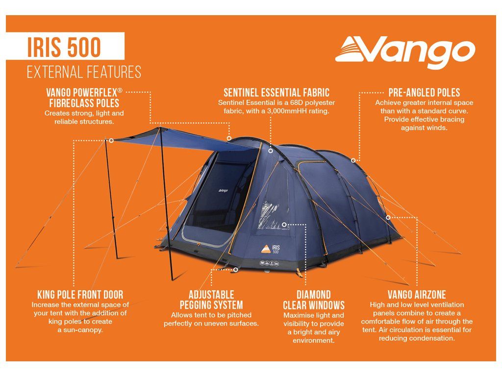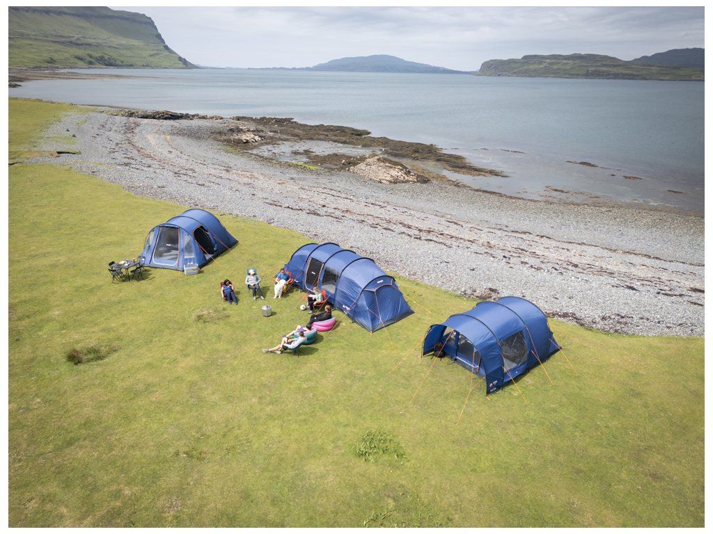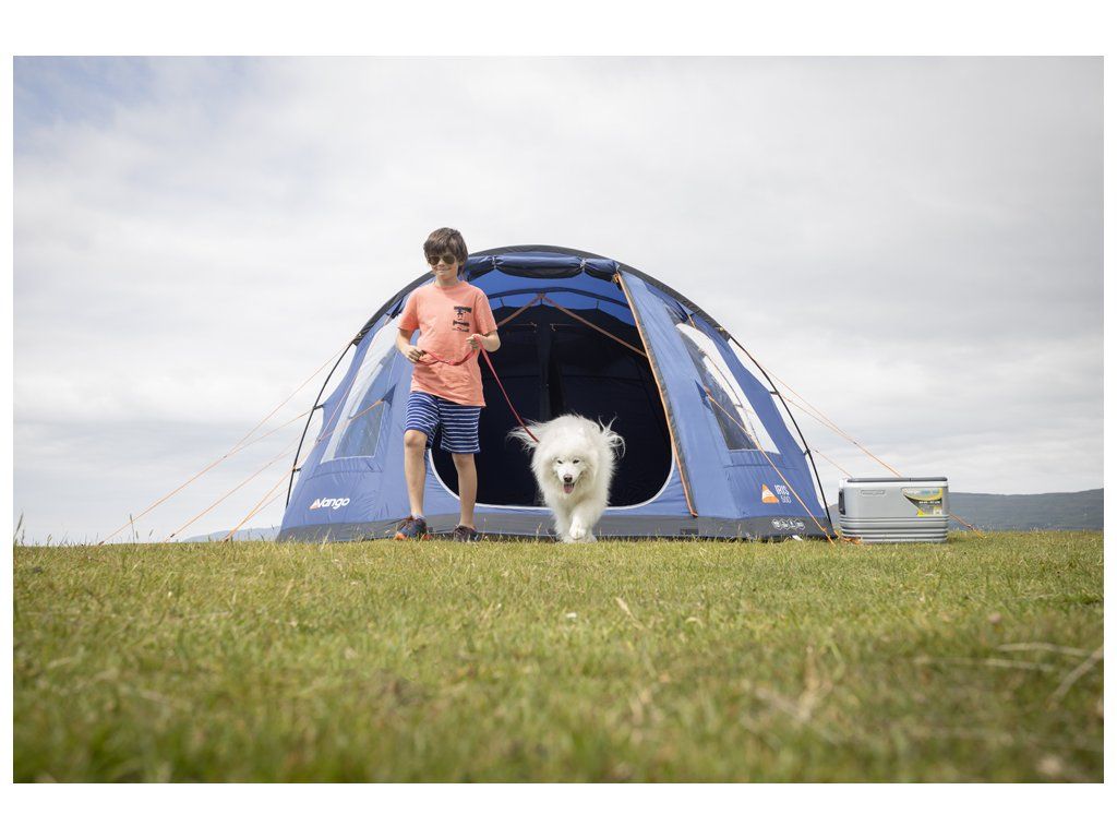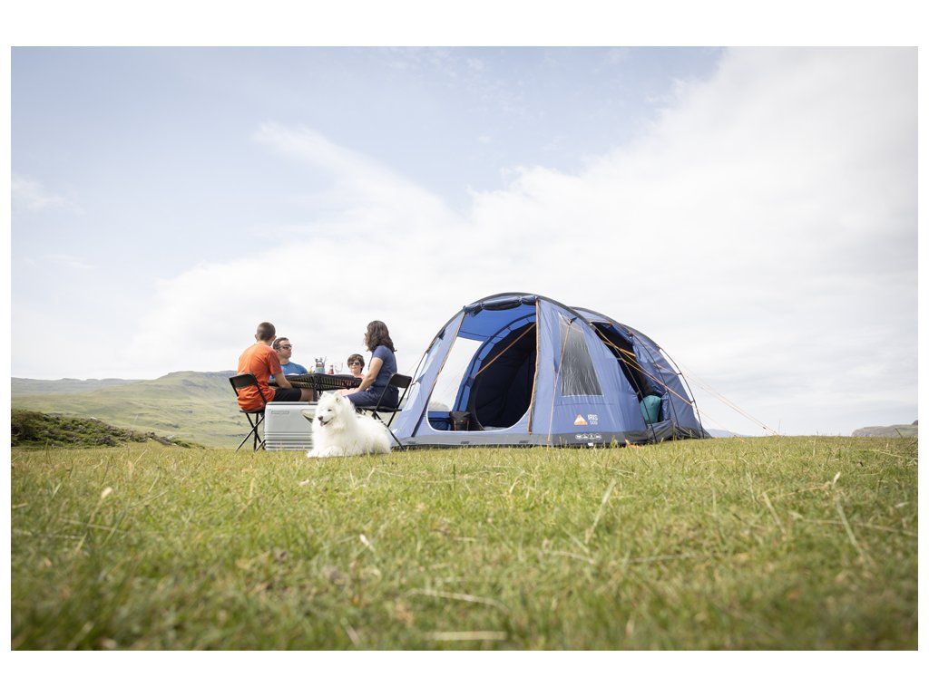 Pevné a dobře viditelné i za šera – barevný přechod z barvy stanu do výrazné oranžové zvyšuje bezpečnost pohybu kolem stanu. -