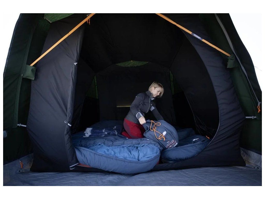 Kombinace vysokých a nízkých větracích otvorů, které zajišťují optimální cirkulaci vzduchu a pomáhají udržet suché klima uvnitř stanu. -
