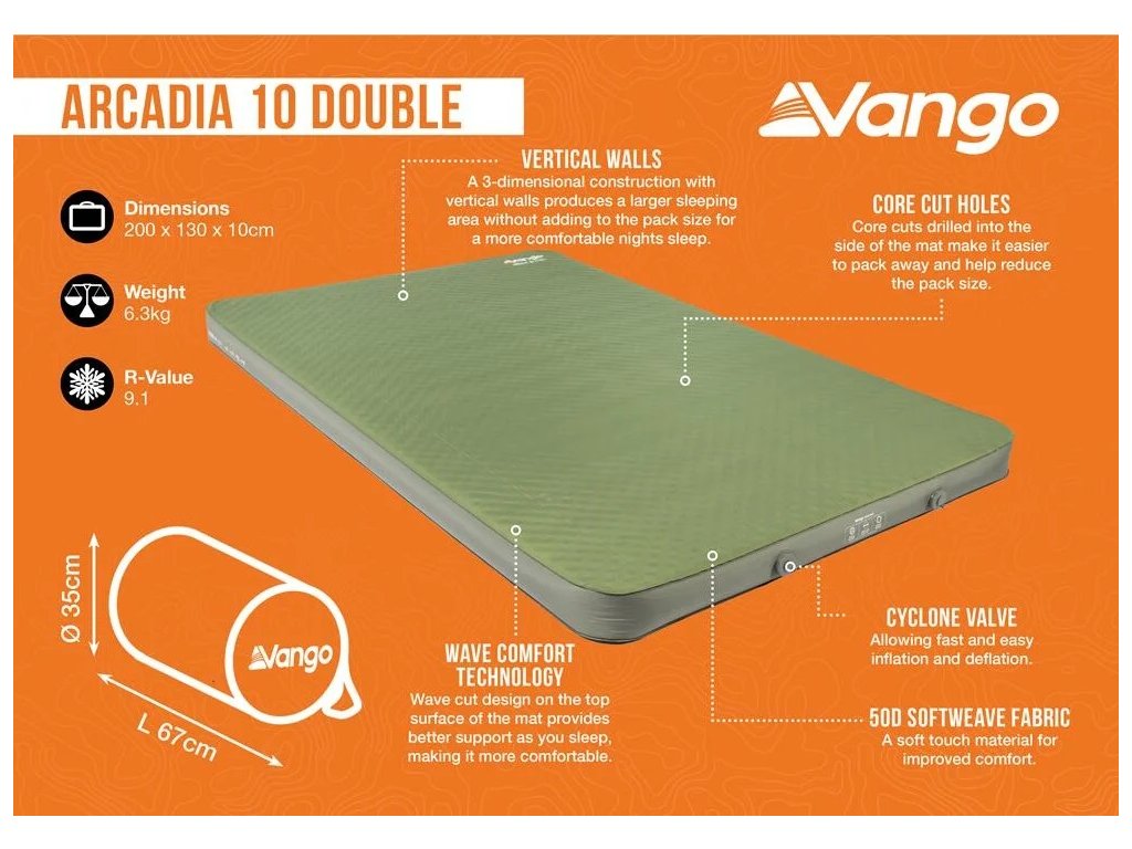 Samonafukovací karimatka Vango Arcadia 10 Double Olive