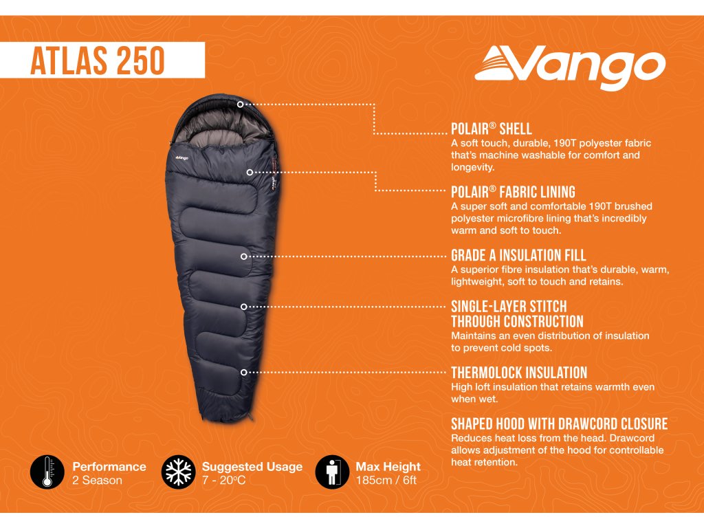 Zužuje se od ramen k chodidlům, čímž se zmenšuje velikost ve sbaleném stavu a zvyšuje se tepelná účinnost. -