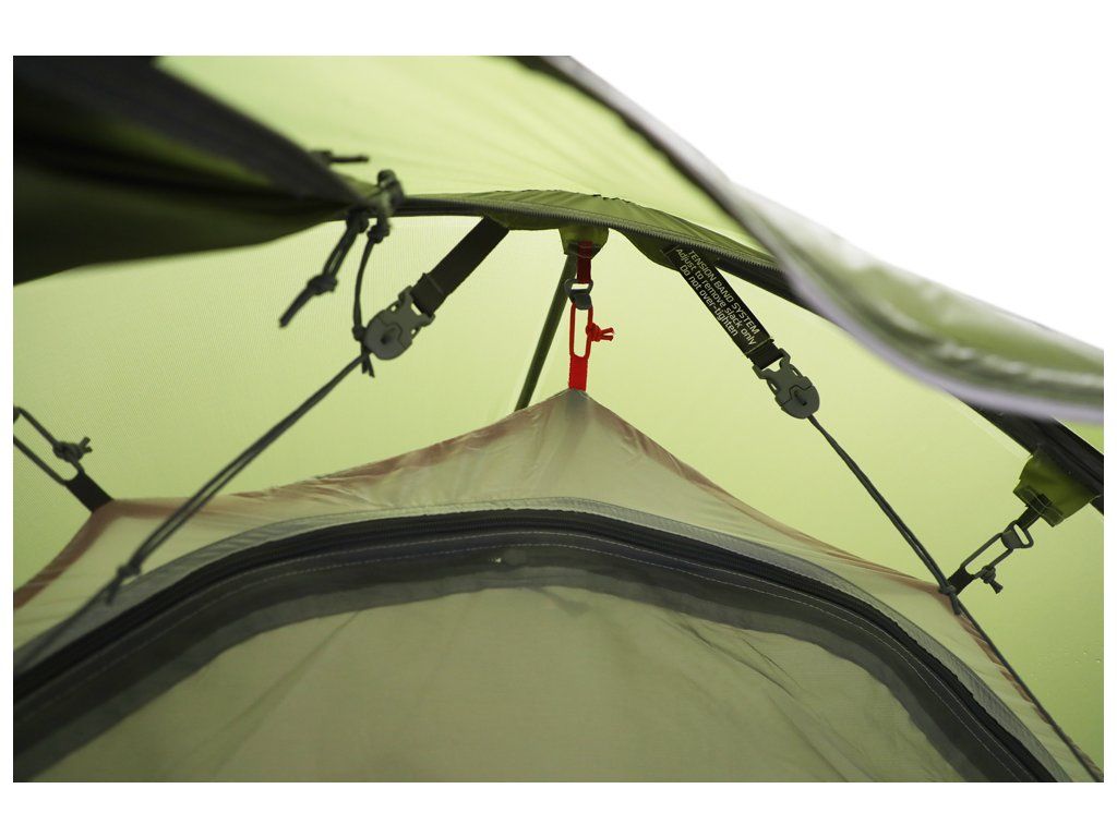 Unikátní vnitřní kotvicí systém Vango F10, který zajišťuje trojúhelníkovou oporu mezi vrcholem konstrukce a základnou stanu, čímž zvyšuje stabilitu stanu v silném větru a nepříznivých podmínkách. -