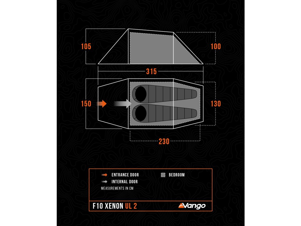 Unikátní vnitřní kotvicí systém Vango F10, který zajišťuje trojúhelníkovou oporu mezi vrcholem konstrukce a základnou stanu, čímž zvyšuje stabilitu stanu v silném větru a nepříznivých podmínkách. -
