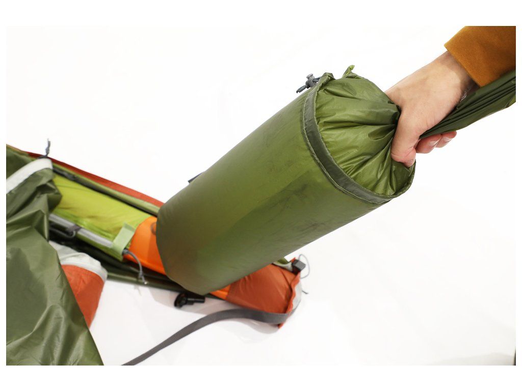 Díky velkému vrchnímu otvoru je balení stanu snadné. Stahovací šňůra a kompresní popruhy minimalizují velikost balení. -