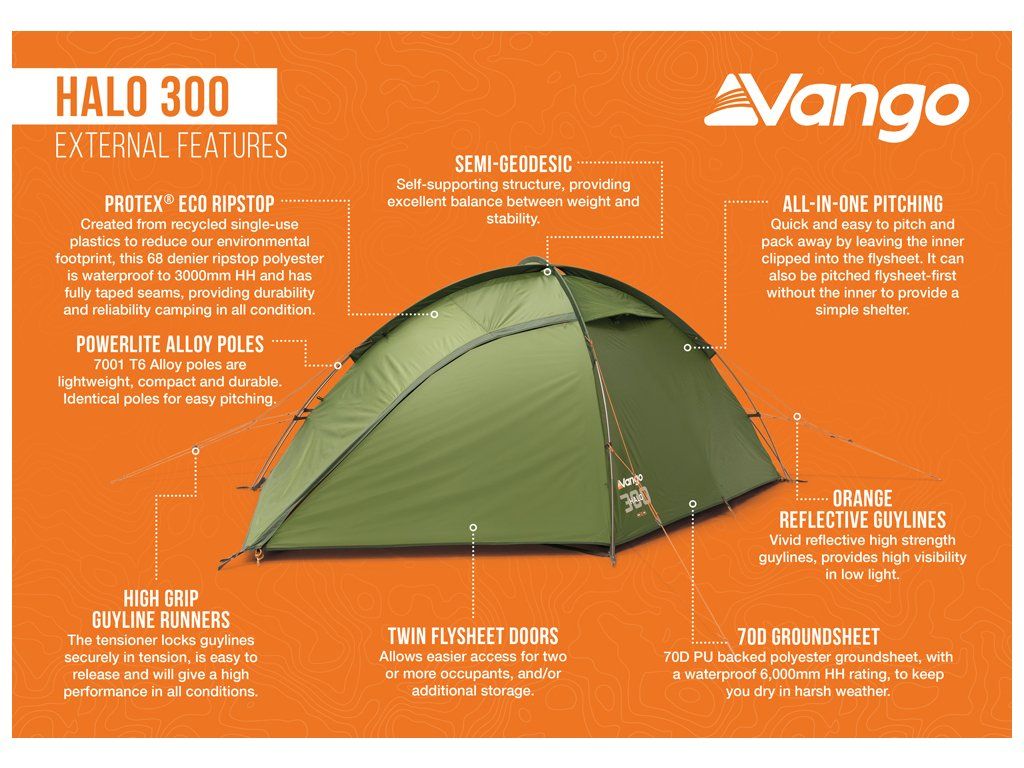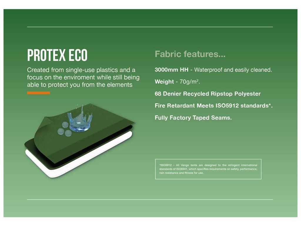 Vyrobeno z recyklovaných plastů na jedno použití, 70 denier ripstop polyester je vodotěsný do 3 000 mm HH a má plně podlepené švy, což zajišťuje odolnost a spolehlivost při jakémkoli kempování. -
