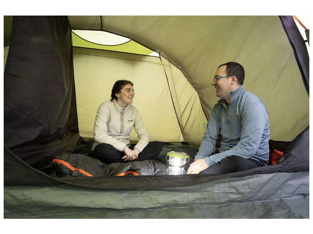 Velký vrchní otvor usnadňuje balení stanu. Stahovací šňůra a kompresní popruhy minimalizují velikost balení.