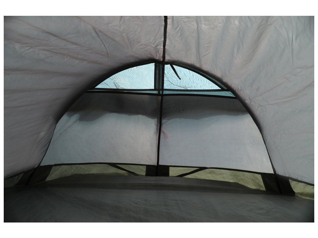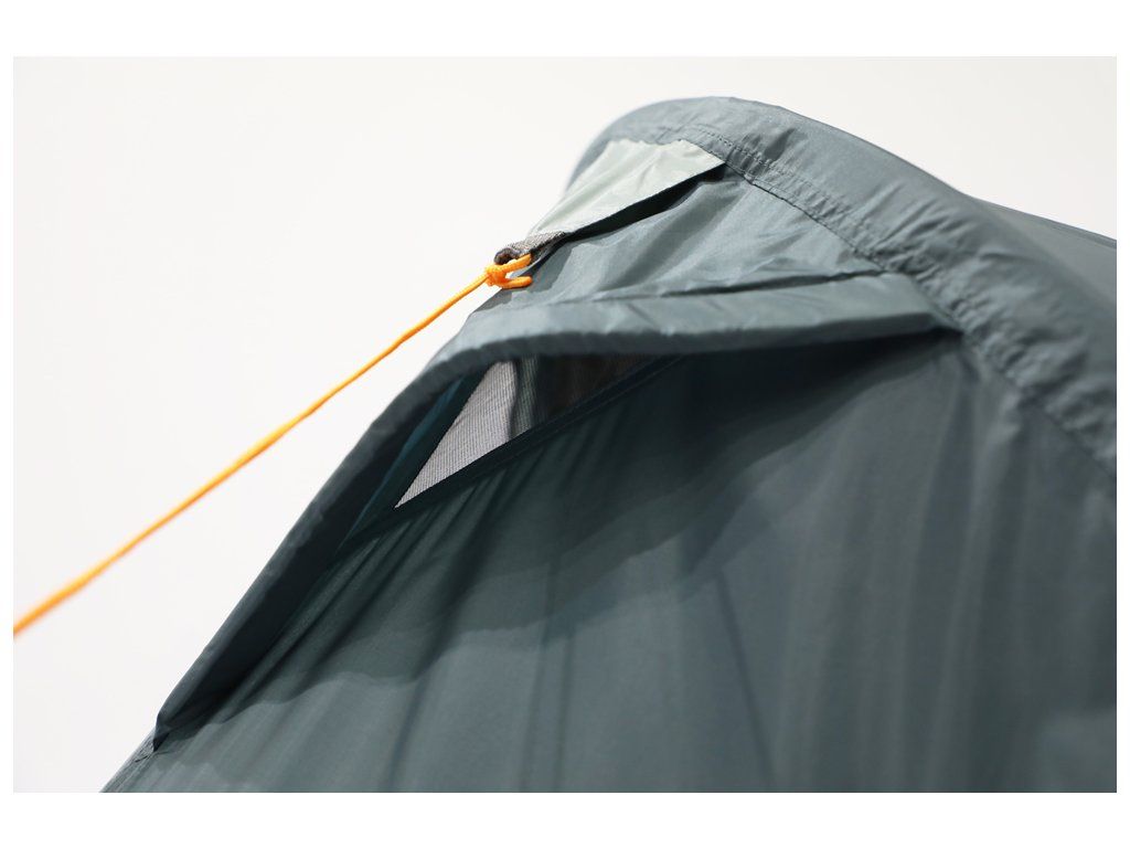 Velký vrchní otvor usnadňuje balení stanu. Stahovací šňůra a kompresní popruhy minimalizují velikost balení.