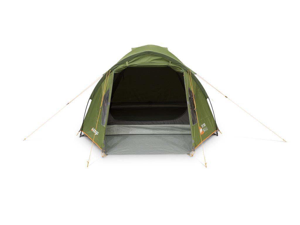 Velký vrchní otvor usnadňuje balení stanu. Stahovací šňůra a kompresní popruhy minimalizují velikost balení.